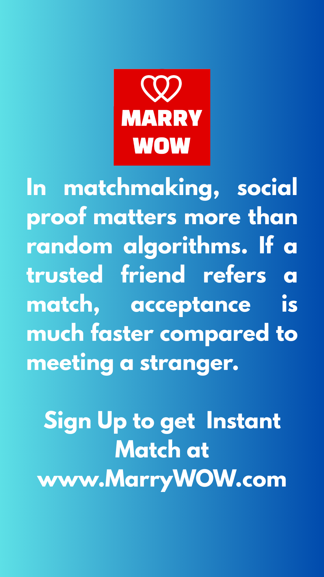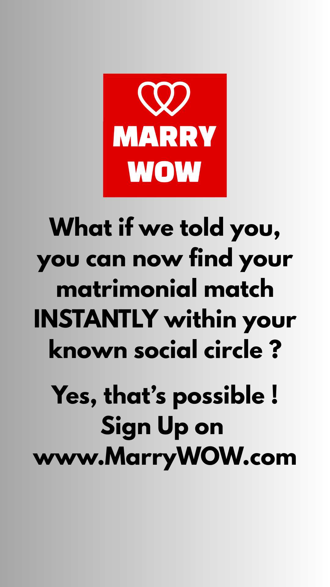 MarryWOW connects you with eligible singles from within your trusted social circles and beyond through a specially curated, intelligent matchmaking technology. Find good prospects in known circle with ease.